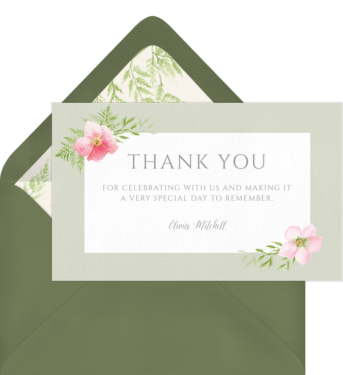 thank you notes delicate floral green adult birthday Designs
