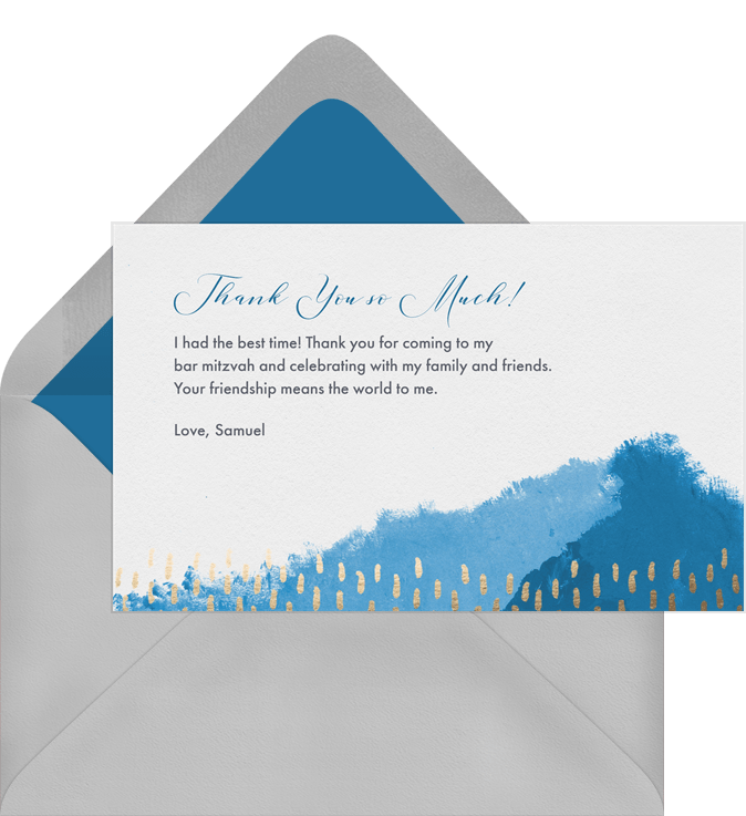 thank you notes delicate foil accents blue bar mitzvah Designs
