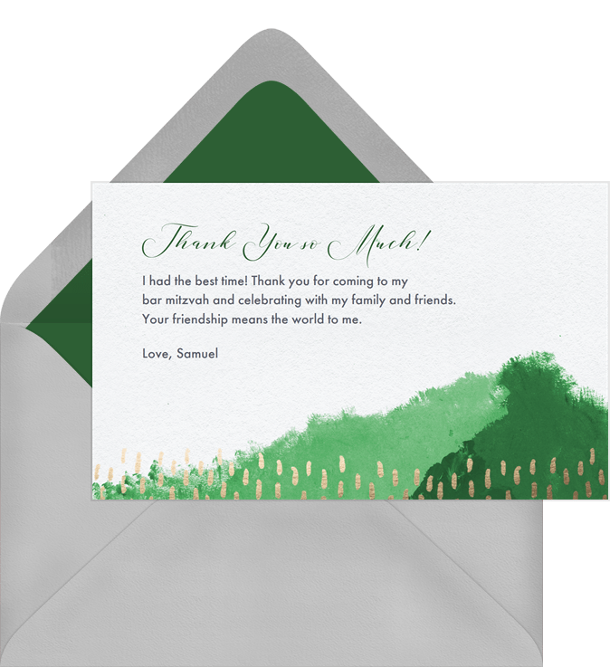 thank you notes delicate foil accents purple bar mitzvah Designs