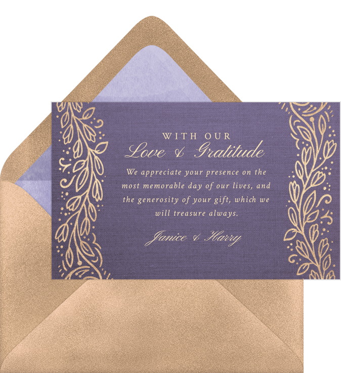 thank you notes embellished linework purple wedding Designs