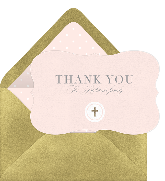 thank you notes foil cross pink baptism Designs
