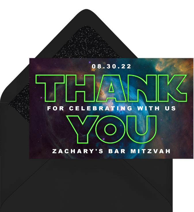 thank you notes galaxy far far away green bar mitzvah Designs