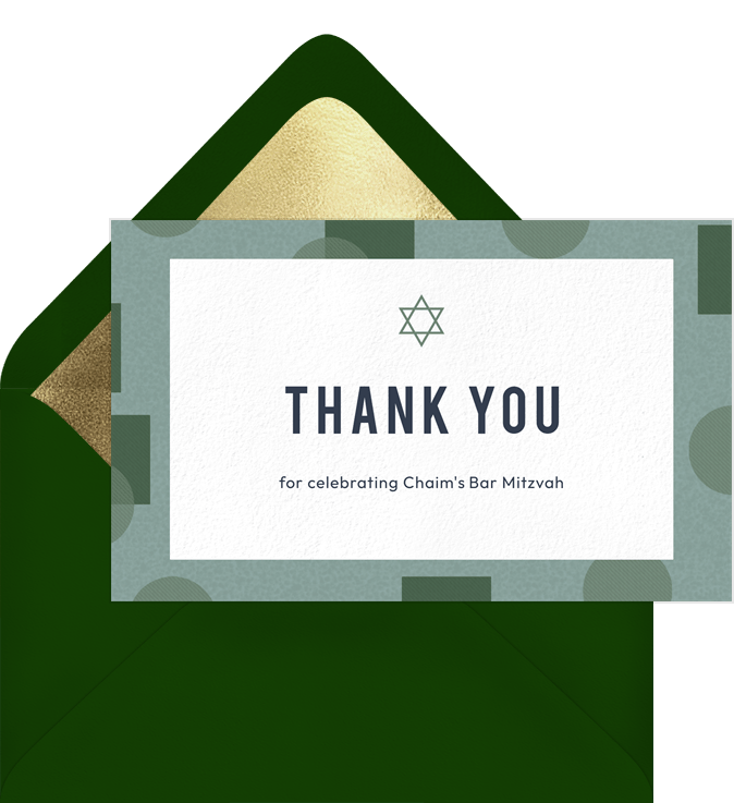 thank you notes geo frame green bar mitzvah Designs