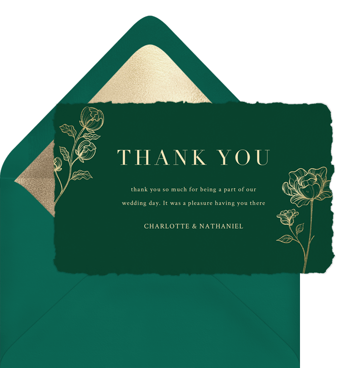 thank you notes golden florals green wedding Designs