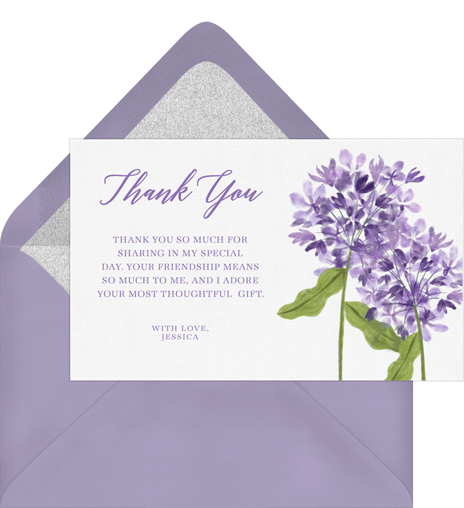 thank you notes hand-painted hydrangeas purple bridal shower Designs