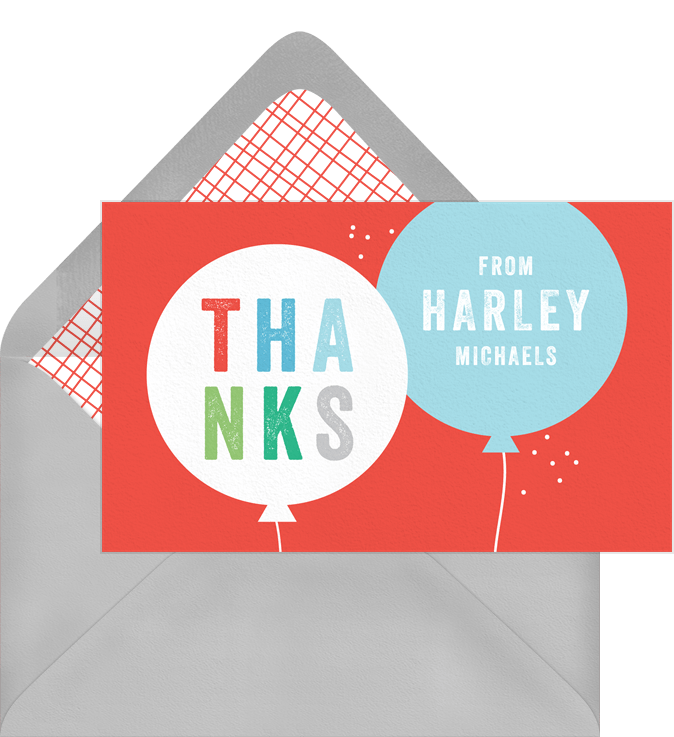 Hooray Balloons Thank You Note