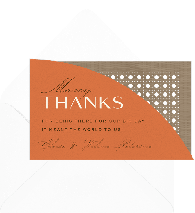 thank you notes modern rattan arch orange wedding Designs