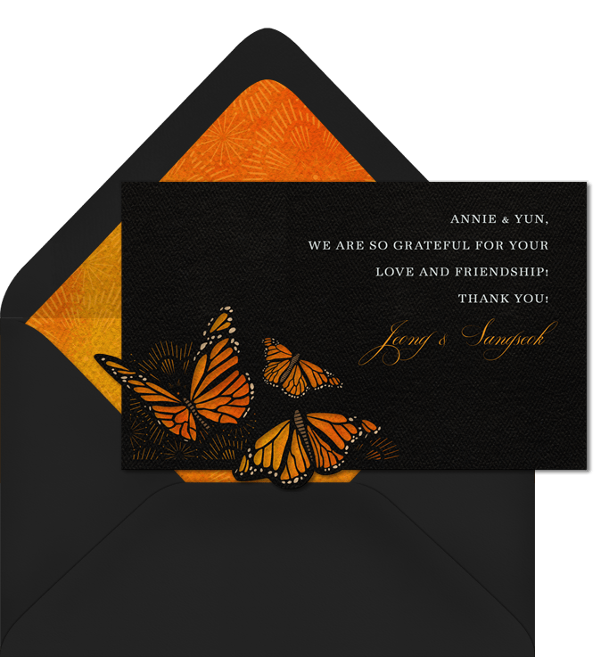 thank you notes monarch's tale orange wedding Designs