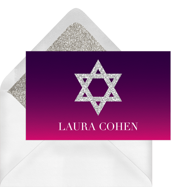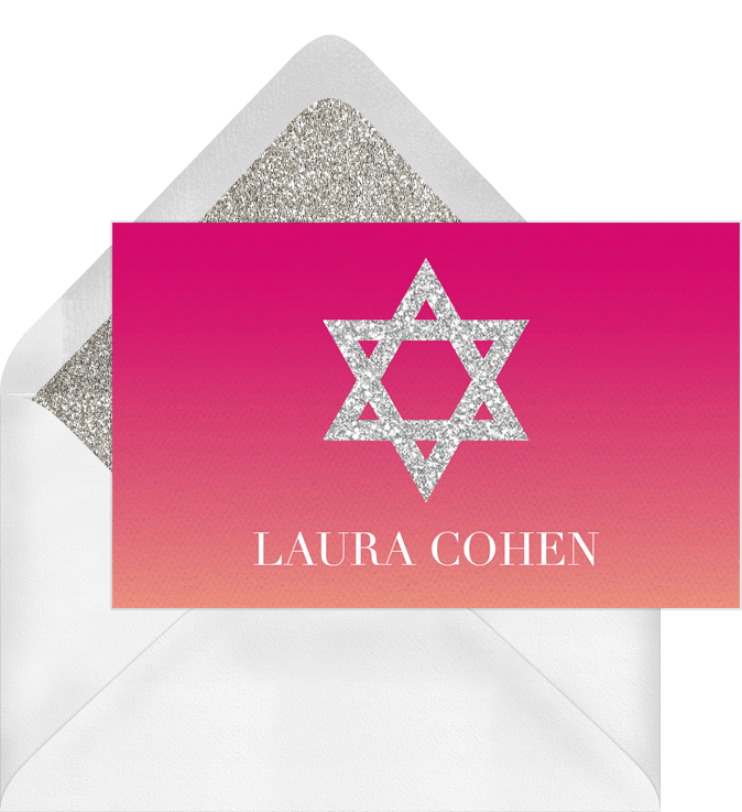thank you notes ombre silver star pink bat mitzvah Designs