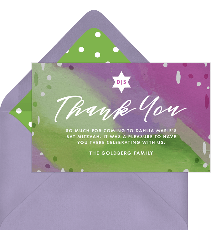 thank you notes painterly pattern green bat mitzvah Designs