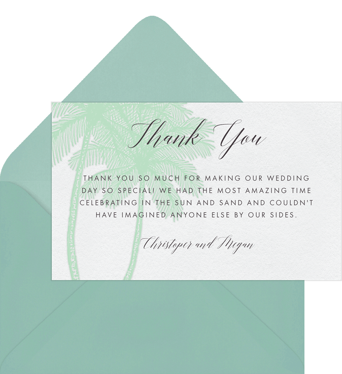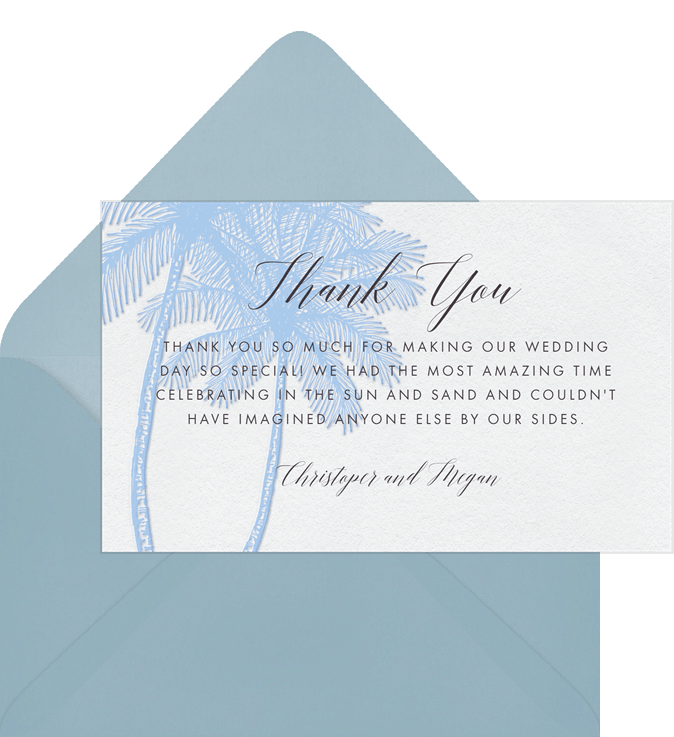 thank you notes palm tree trio blue wedding Designs