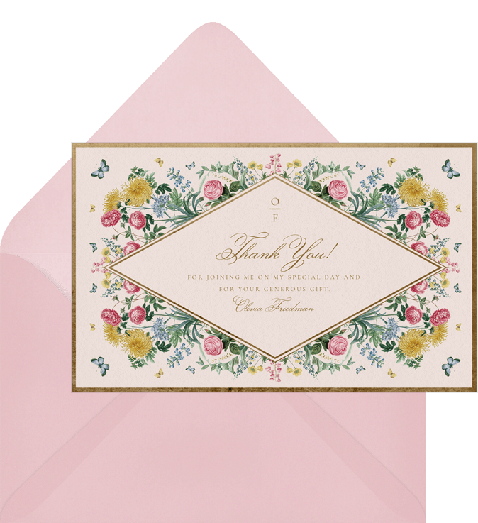 thank you notes romantic spring florals green bat mitzvah Designs