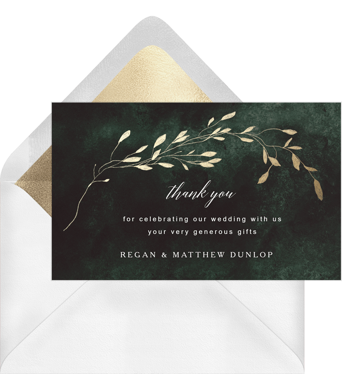 thank you notes romantic vine green wedding Designs