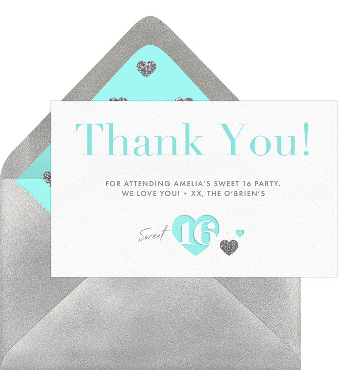 Sweetheart 16 Thank You Note