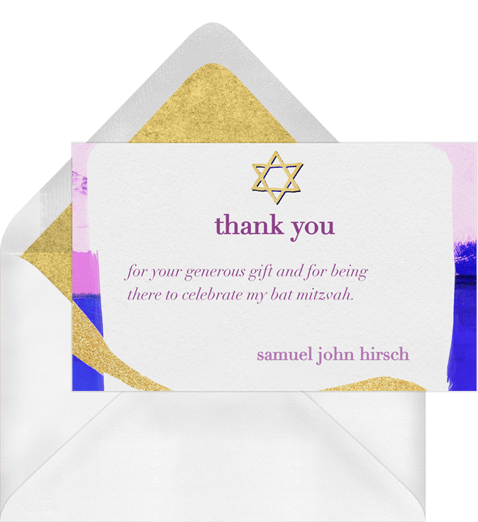 thank you notes touch of glitter purple bar mitzvah Designs