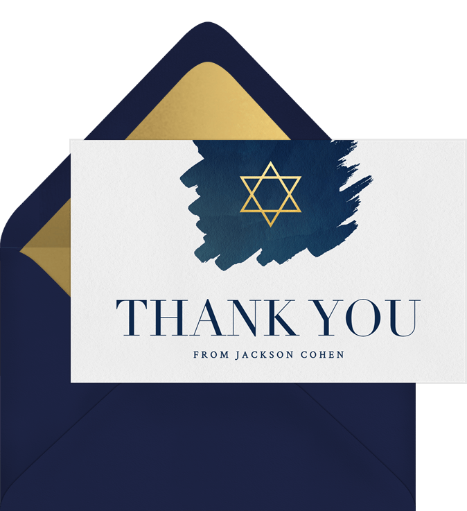 thank you notes watercolor brushstroke blue bar mitzvah Designs