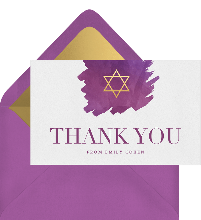 thank you notes watercolor brushstroke pink bat mitzvah Designs